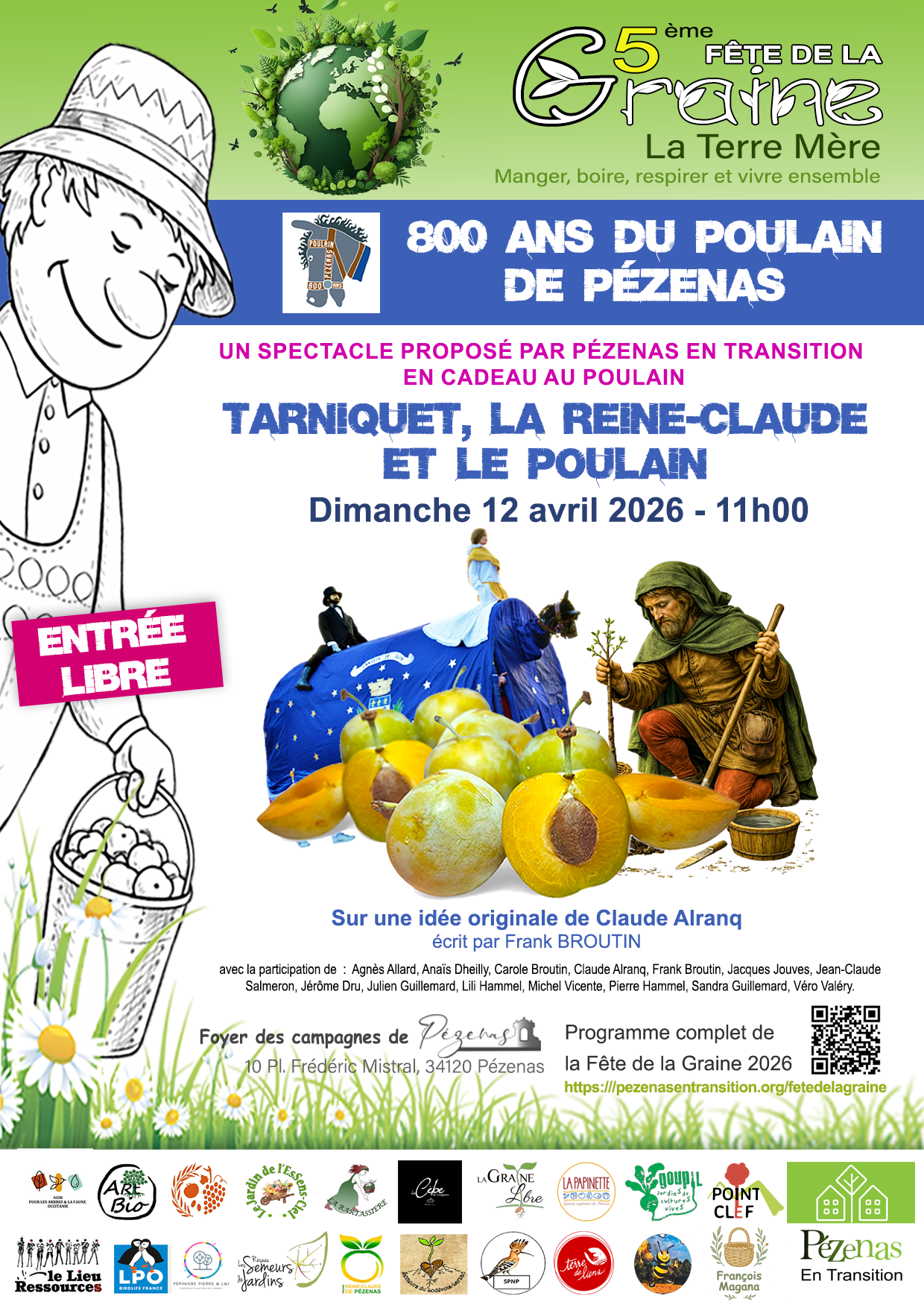 Ne manquez pas la première de "Tarniquet, la Reine-Claude et le Poulain" ! Dimanche 12 avril - 11H00 - Foyer des campagnes - Pézenas