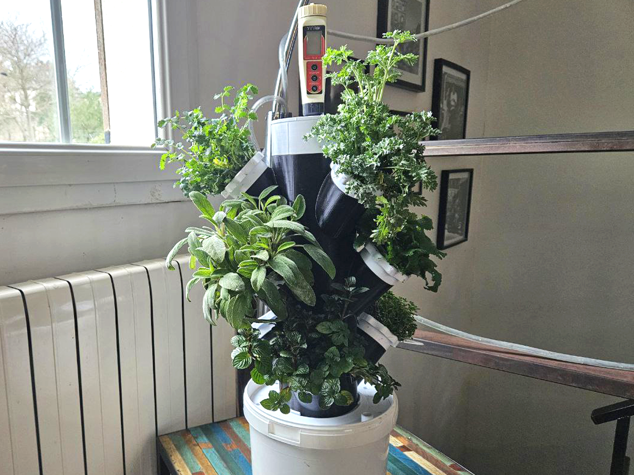 Pézenas en Transition vous présente sa tour hydroponique de salon avec des plantes aromatiques.