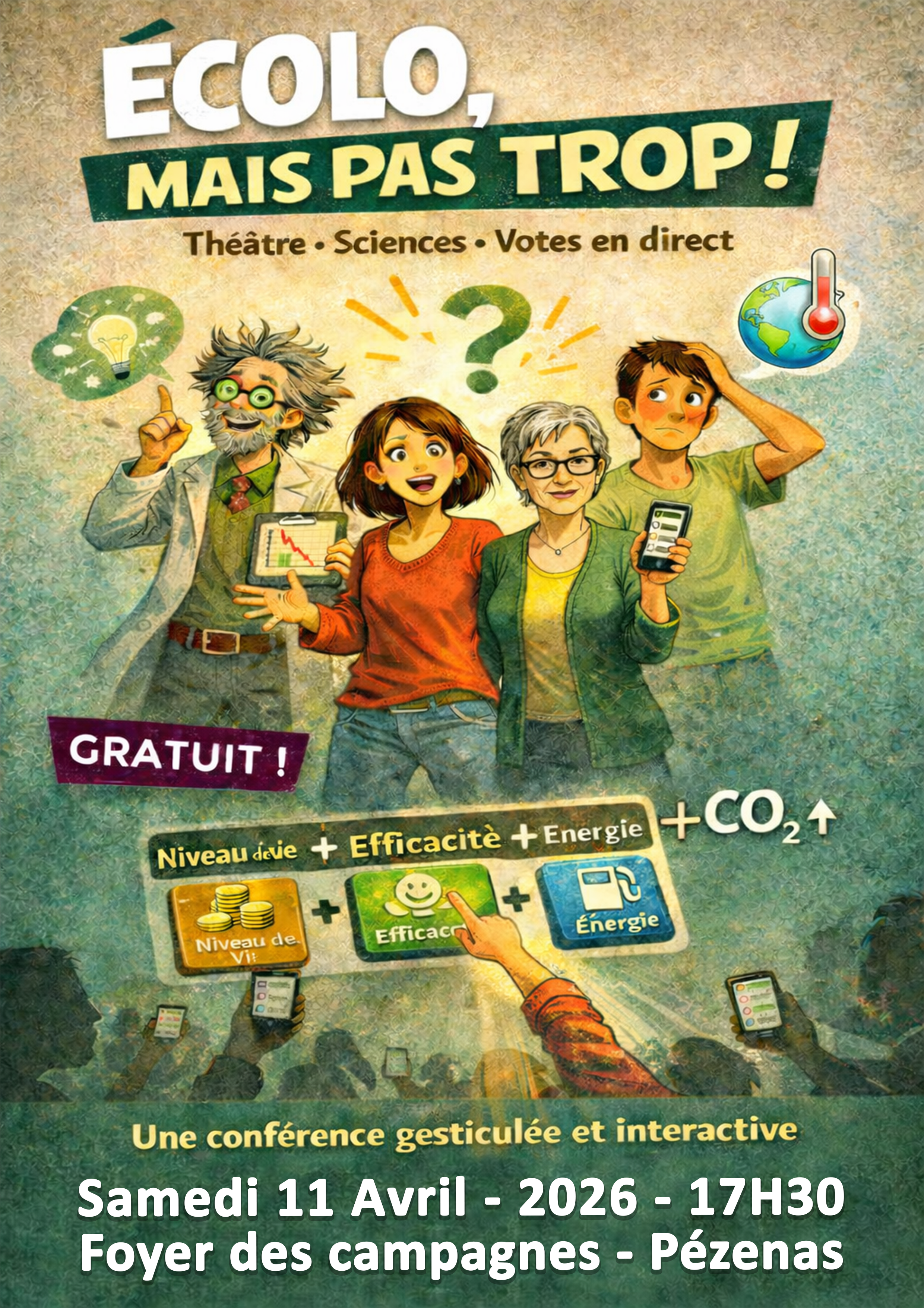 🌿 Écolo, mais pas trop ! Conférence gesticulée alliant humour et science pour parler transition écologique sans culpabilité.
